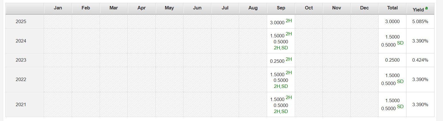In fact, the company has been declaring increasing dividends for the past 3 years as can be seen from the table below.