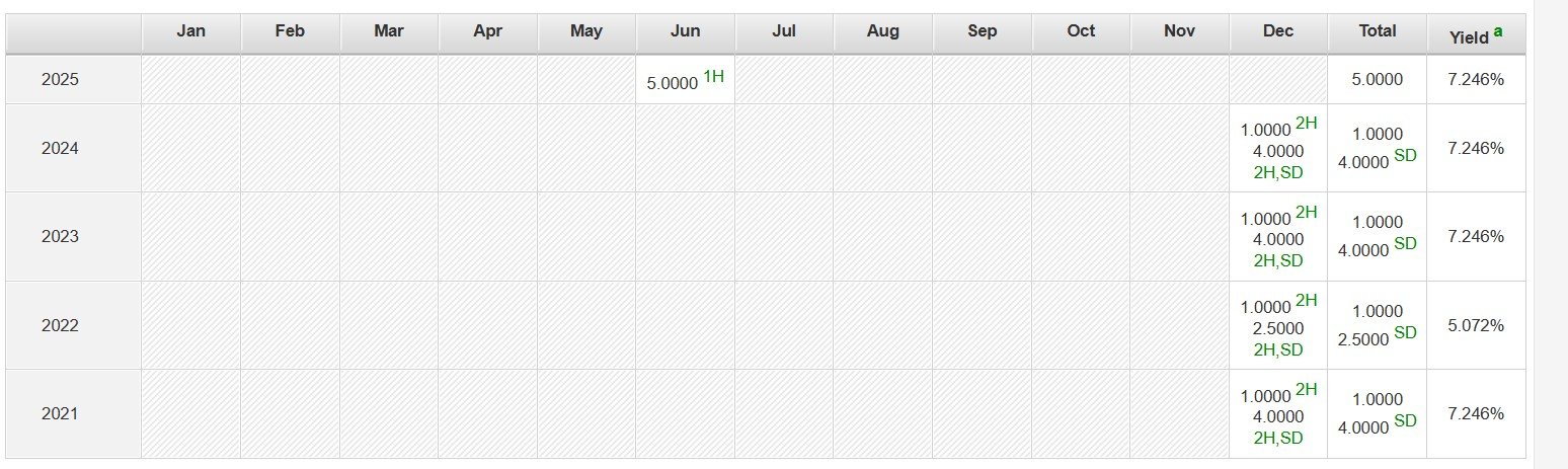The company has been giving steady dividends for the past few years as can be seen from the table below.