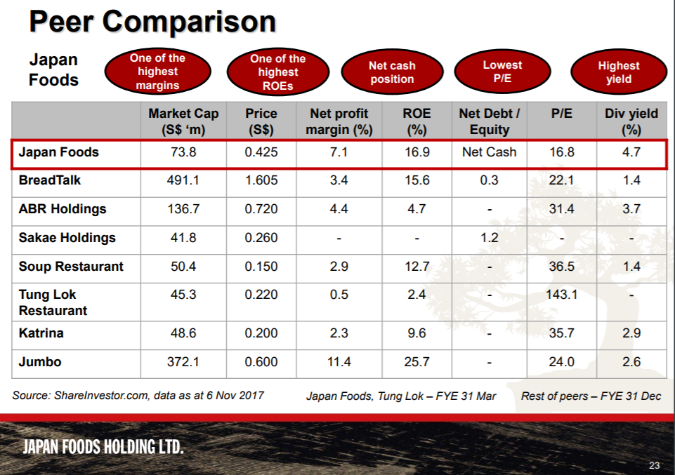 Japan Foods Holding (JFH) has recently caught my attention, after I have started screening for stocks again. JFH operates a wide range of F&B outlets selling Japanese food.