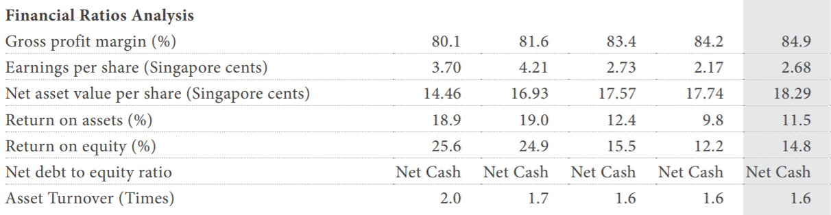 Thus their gross profit margin increased from 80% to 85%. JFH’s increasing gross profit margins signals that they have managed their costs of sale well. Cost of sale mainly consists of the cost of raw materials, which were probably kept low because of bulk purchases and economies of scale.